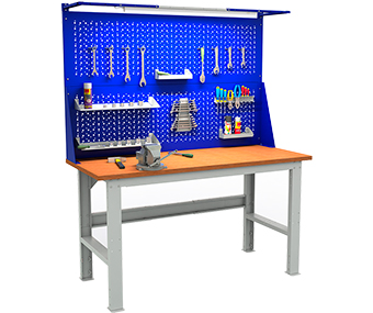 - дополнительно верстак можно укомплектовать перфорированным экраном соответствующего размера, светодиодным освещением и аксессуарами для инструментов.