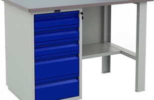 Легкий слесарный верстак изготовлен из высококачественной листовой стали, что обеспечивает его надежность и длительный срок эксплуатации. Оснащен верстак столешницей из МДФ толщиной 24 мм и оцинкованного листа металла толщиной 1,5 мм. Металлический слесарный верстак имеет сварную или сборно-разборную конструкцию с возможностью различной компоновки инструментальных тумб. Для окраски верстака используется порошковая краска, способная выдерживать длительную температурную и механическую нагрузку.
