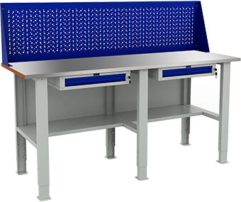 - дополнительно верстак можно укомплектовать перфорированным экраном соответствующего размера, светодиодным освещением и аксессуарами для инструментов.